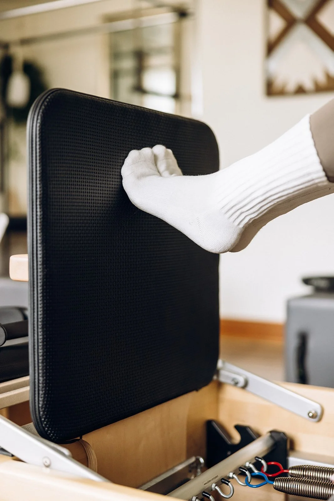 Added resistance, more reps, use of props for a slow burn on the reformer. For intermediate & advanced students.